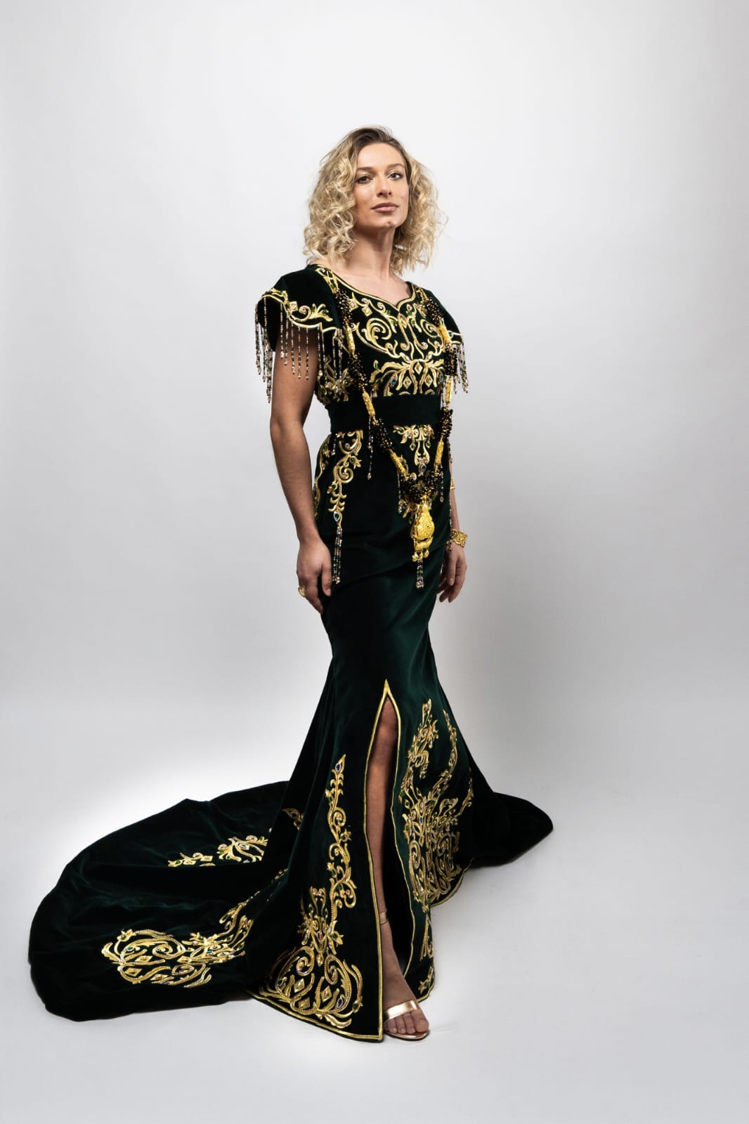 La robe fergani constantinoise JADE transforme chaque apparition en hommage à la beauté constantinoise, célébrant un patrimoine culturel unique au monde. Portez Constantine dans votre cœur avec cette création d’exception.